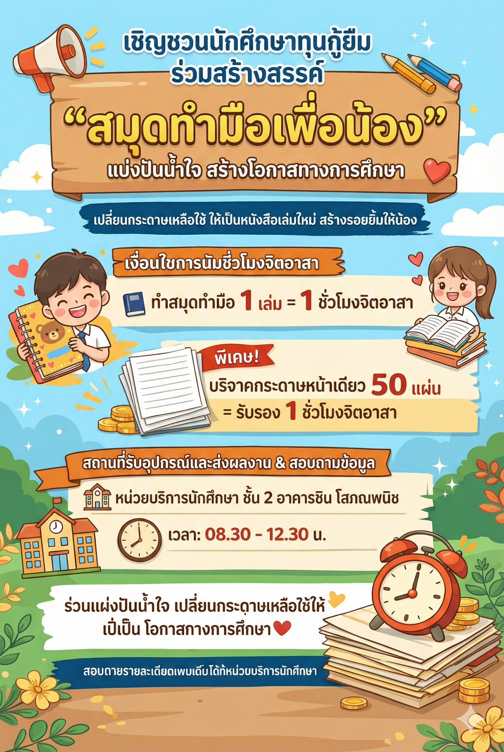 โครงการสมุดทำมือเพื่อน้อง แผนกทุนและบริการนักศึกษาสุริน พูลศิริ | Posted on February 19, 2026 | Post Navigation ← Previous PostNext Post →