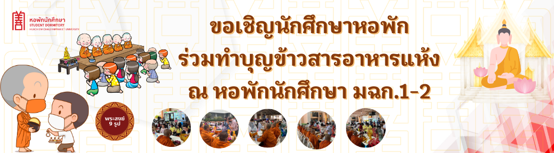 📣 เชิญชวนนักศึกษา ม.หัวเฉียวฯ 🙏 ร่วมกันทำบุญตักบาตร ข้าวสารอาหารแห้ง 😇 ณ หอพักนักศึกษา มฉก.1-2 …